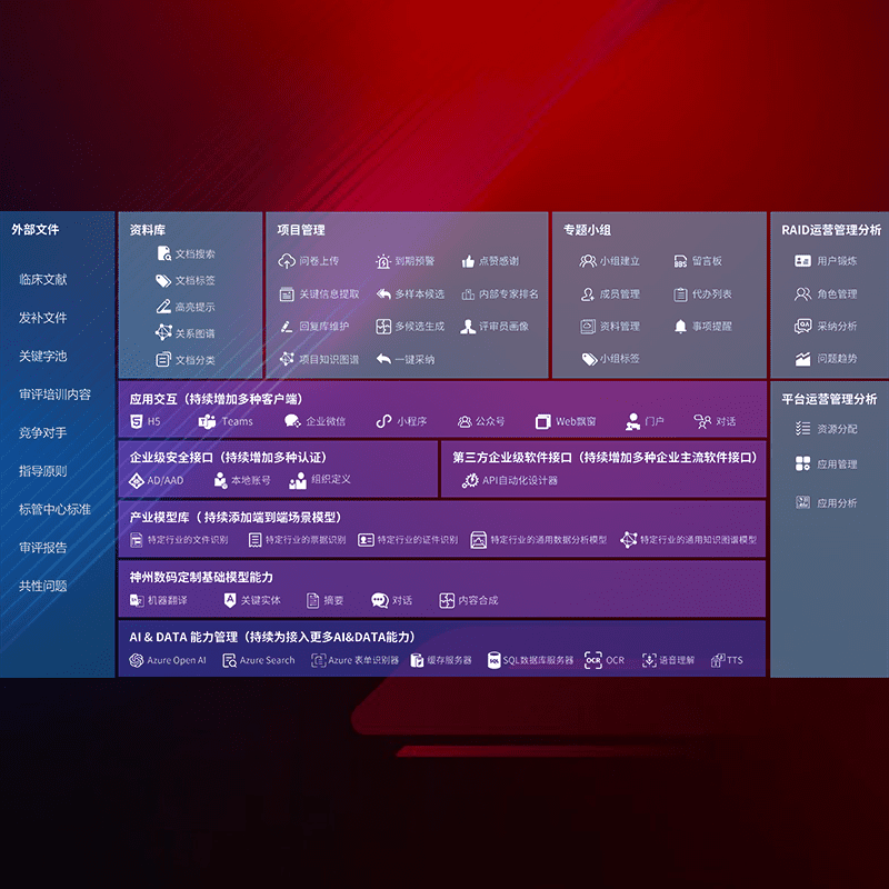 医疗器械产品上市前,,要熟悉严格与繁复评审标准,,,整理分析监管机构指导文件中的海量信息。。。。企业急需一个智能化解决方案,,,,提升知识管理效率,,,,提高评审通过率,,,,以提升其市场竞争力。。。。